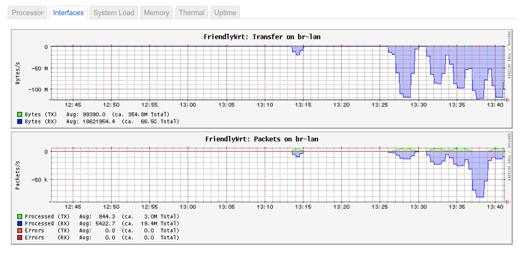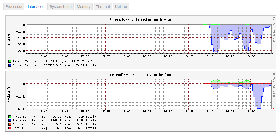 As you can see from the above benchmarks the Nanopi-R4S can max the GbE speed of my setup in the bridged mode. You may see that the speed dropped when using custom TCP window sizes, which I guess it’s because of the mismatch window sizes internally in bridge, but I don’t give much attention to this as the default TCP size works fine.