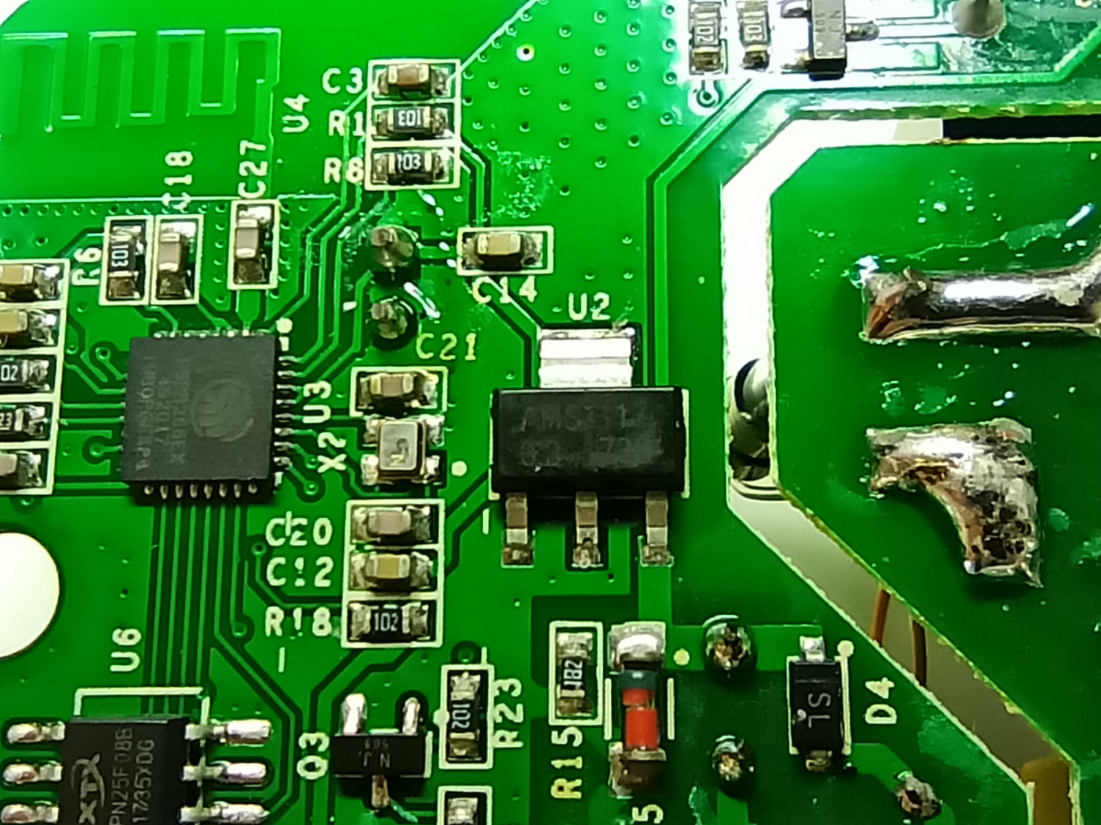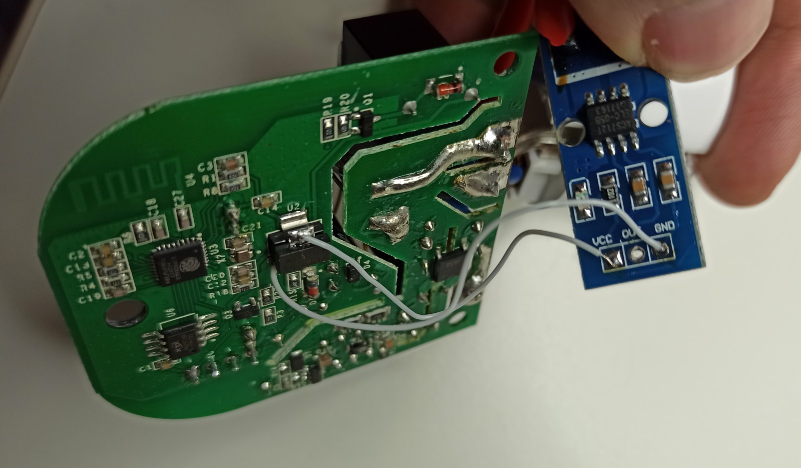 Well, hacking sounds really awesome, but in reality it was too easy to even consider it as hacking, but anyway. Do, first problem I faced was that the ESP8266 is a 3V3 device and the ACS712 is a 5V device. Also the ACS712 is one of those 5V rated devices that indeed doesn’t work with 3V3. Therefore, you actually need 5V, but the problem is that there isn’t any 5V on the circuit.