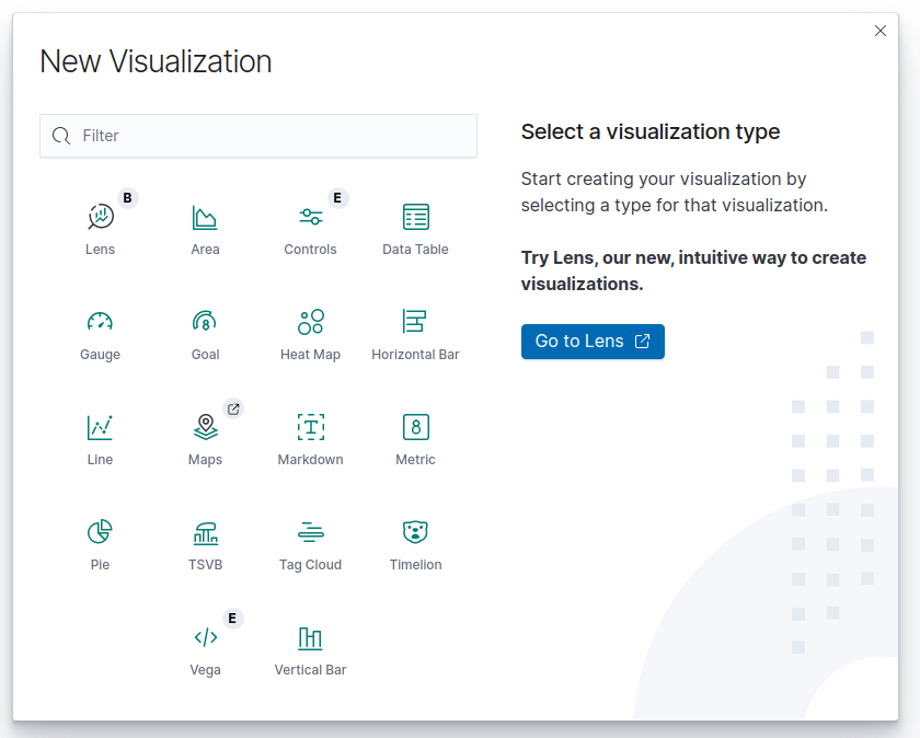 Management -> Stack Management -> Kibana -> Index Patterns -> Create index pattern