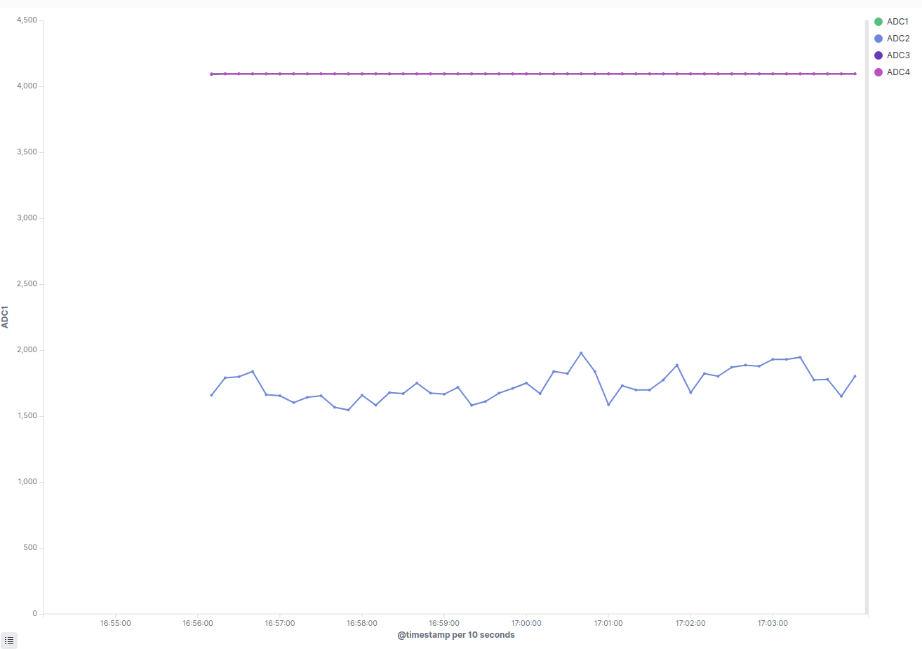 In the above plot there are 4x ADCs but the 3 of them are floating and the value is close to the max ADC range value which is 4092 (for 12-bits).